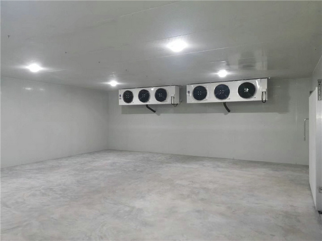 制冷系統:制冷系統配備一用一備兩套12HP高溫箱式冷凝機組(內含艾默生谷輪ZB壓縮機,帶電磁閥),該機組制冷量大,性價比高,安全可靠。冷庫內同樣配備了一用一備兩套D42/503A系統高效強風型冷風機,該風機運行穩定噪音小,送風距離遠,使得庫內降溫速度快,極大增強了化霜效果,增加快速對流循環,從而達到每個角落的溫度均勻性。