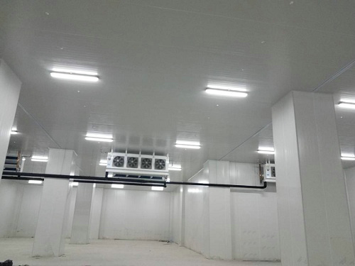 該冷庫都是采用的艾默生渦旋壓縮機組(含冷凝器、電磁閥等),冷風機為DL105系列,庫體保溫為100mm雙面聚氨酯冷庫板。